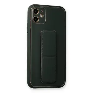 Apple İphone 12 Kılıf Coco Deri Standlı Kapak - Füme
