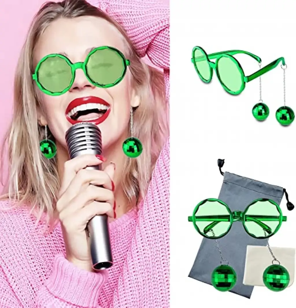 Disko Toplu Küpeli Parti Gözlüğü Yeşil Renk