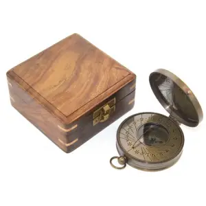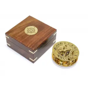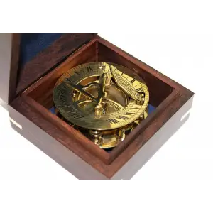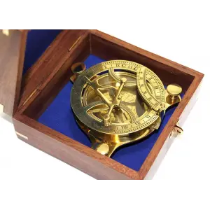 Ahşap Kutulu Pirinç Güneş Saati Ve Pusula Modeli 2213