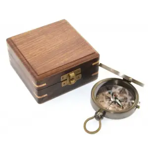 Ahşap Kutulu Pirinç Mercekli Pusula 16040