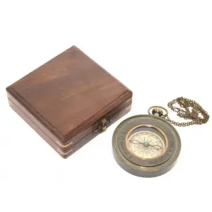 Ahşap Kutulu Pirinç Mercekli Pusula 16040a