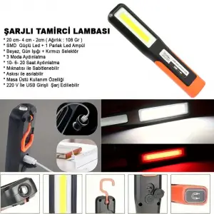 Şarjlı Mıknatıslı Çalışma Lambası Cep Feneri Wt-307-s