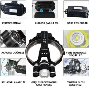 6000 Lümen 3 Başlık Şarjlı Kafa Lambası Wt-630