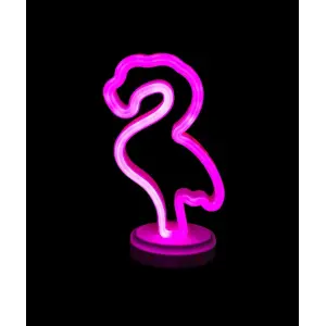 Neon Işıklı Flamingo Yazılı Masa Gece Lambası Pil+usb
