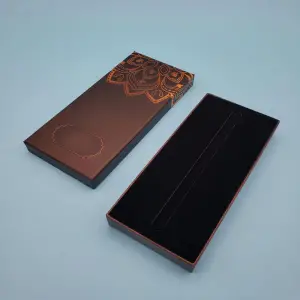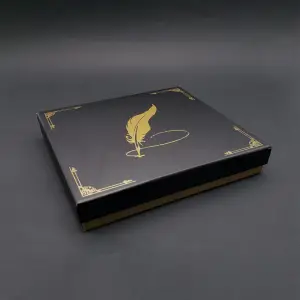 Özel Tasarım Siyah Kapaklı Tüylü Kalem Motifli Kutu