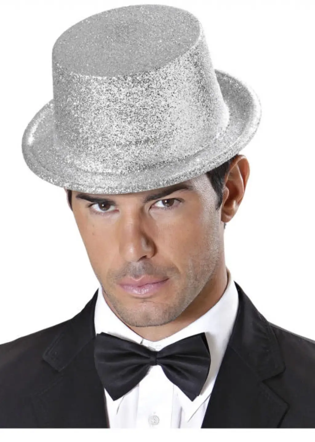 Gümüş Renk Uzun Plastik Simli Parti Şapkası