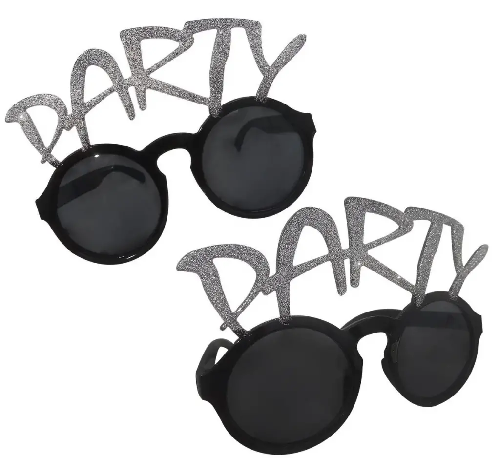 Gümüş Simli Party Yazılı Parti Gözlüğü Show, partiler, festivaller, doğum günleri veya diğer özel günlerde eğlenceli ve parlak bir görünüm elde etmek isteyenler için mükemmel bir seçimdir. Gümüş rengi ve simli tasarımı ile her kıyafete uyum sağlayacak bu gözlük, "Party" yazısı ile de partinin heyecanını yansıtacaktır. Hafif ve ergonomik tasarımı sayesinde rahat bir şekilde takılabilir.
