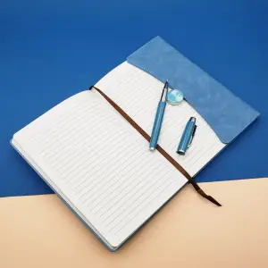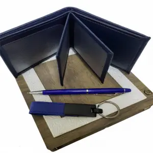 Mavi Cüzdan Kalem Ve Deri Mavi Anahtarlık Set