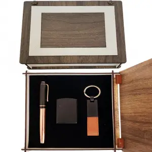 Özel Ahşap Kutulu Bakır Roller Kalem Anahtarlık Ve Çakmak Set