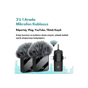 K9 2’li Type-c Kablosuz Yaka Mikrofonu