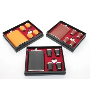 Paslanmaz Çelik 4 Shot Bardaklı Derili Matara Seti Alk2672