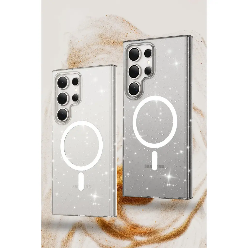 Glow MagSafe Kapak, telefonunuzu her açıdan öne çıkaran parlak ve şık bir tasarıma sahiptir. Simli arka planı, ışık altında parlayarak cihazınıza göz alıcı bir görünüm kazandırır.