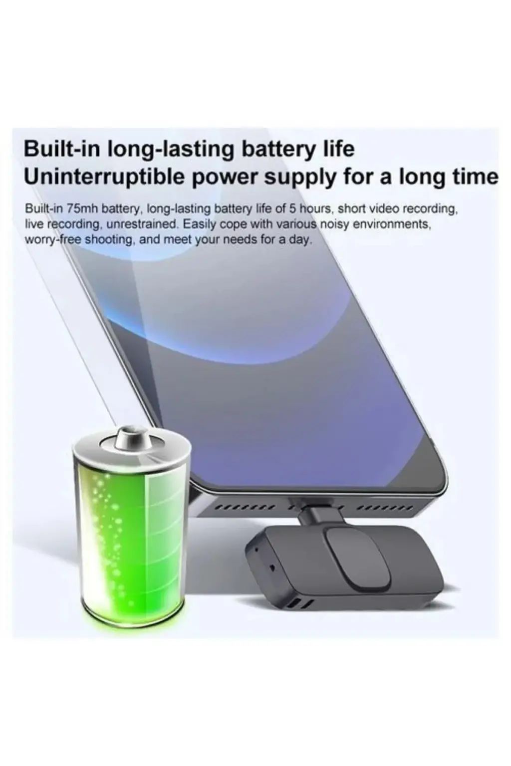 2 Adet Kablosuz Yaka Mikrofonu Lightning 2'li Mini Mikrofon K9 ?İki kişi için çalışma modu ?-otomatik bağlantı, hoparlör, , duraklatma modu ?Tak ve çalıştır?-yenilikçi kablosuz yaka mikrofonu, verici ve alıcı içeren diğerlerinden farklıdır, otomatik olarak bağlanacaktır, böylece uygulama ve Bluetooth gerekli değildir. Sadece vericiyi cihazlara takın ve doğrudan oynatın.?Performans kablosuz sistemi?- 5 saate kadar çalışma süresini destekler. 20M engelsiz bağlantı, 360 ° çok yönlü ses alımı, her detayı kaydetme.?Gürültü azaltma ? profesyonel dereceli gürültü azaltma, sesin etkili tanımlanması, gürültülü ortamlarda net kayıt. Dahili yüksek hassasiyetli ses yakalama aksesuarları ve maksimum destek 20khz yüksek frekans.? Gerçek zamanlı otomatik senkronizasyon teknolojisi?-kablosuz mikrofon çok kanallı gerçek zamanlı karıştırmayı destekler, telefon ve insan sesi için arka plan müziğini gerçek zamanlı olarak senkronize edebilir, video sonrası düzenlemeyi azaltın, geleneksel mono mikrofonların frekansının 6 times fazla profesyonel tam bant ses 44.1 ~ 48kHz stereo CD kalitesi sunar. ÖzelliklerMikrofon: dijital silikon işaretiGiriş voltajı: 5VPil kapasitesi: 60MAHPil ömrü: 5-6 saatSinyal-gürültü oranı: 64DBM adaptif gürültü azaltmaİletim gecikmesi: 30MSHassasiyet: -42DBFrekans tepki aralığı: 20-20KHZİletim mesafesi: engelsiz 20m-30mUygulanabilir cep telefonu arayüzü: iPhone için, tip-c için Paket içeriği:2 * kablosuz mikrofon1 * şarj arayüzü