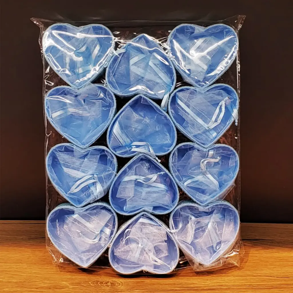 Toptan kalp desenli mavi tül kese kına gecelerinde içine çerez koyabileceğiniz tül keselerden.
