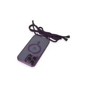 Apple İphone 12 Pro Max Kılıf Divo Lazer Askılı Magsafe Kapak - Derin Mor
