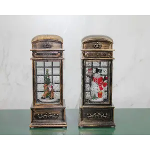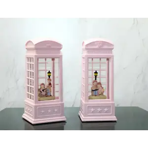 Telefon Kulübesi Tasarımı Yılbaşı Temalı Işıklı Müzikli Kar Küresi 3210