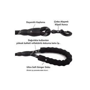 Köpekler İçin Gezdirme Tasması Reflektörlü 130 Cm Halat Orta Ve Büyük Boy Köpekler İçin Siyah