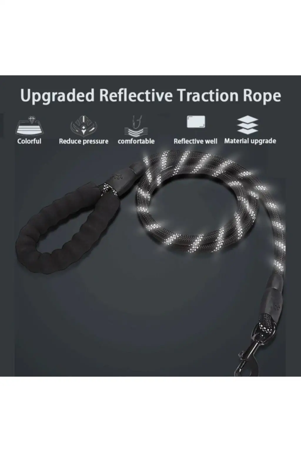 Köpekler İçin Gezdirme Tasması Reflektörlü 130 Cm Halat Orta Ve Büyük Boy Köpekler İçin Siyah