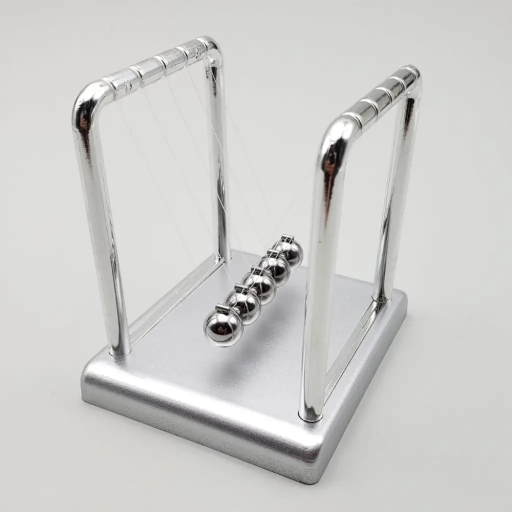 küçük boy denge balans topları yan yana olup birini çekip bıraktığınız zaman diğer toplar birbirine vurmaya başlar.