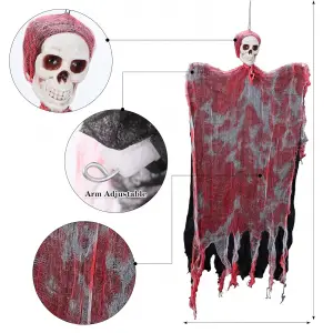 Led Işıklı Kahkaha Atan Sesli Sensörlü Ürpertici Kuru Kafa Kanlı Korku Hayalet Saçaklı Dekor 90x50 Cm