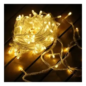 Yılbaşı Aydınlatması 100 Led Perde Hortum Sıcak Beyaz Işık - 10 Metre Dekoratif Şeffaf Kablolu Süs