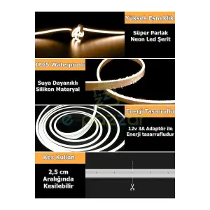 5m 16 Renk 4 Fonksiyonlu Esnek Şerit Neon Led