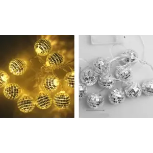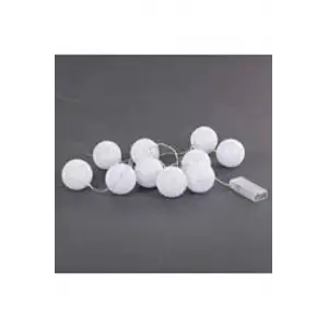 2m 10'lu Işıklı Beyaz Top Dekoratif Süs Pilli