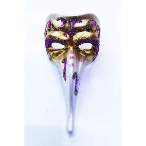 Fuşya Renk İşlemeli Seramik Malzemeden İmal Venedik Uzun Maske Magnet