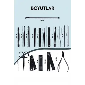 13 Parça Çantalı Manikür Pedikür Seti El Ayak Tırnak Bakım Seti Cımbız Makas Siyah Nokta Temizleme Batık Tırnak Engelleme Aparatı
