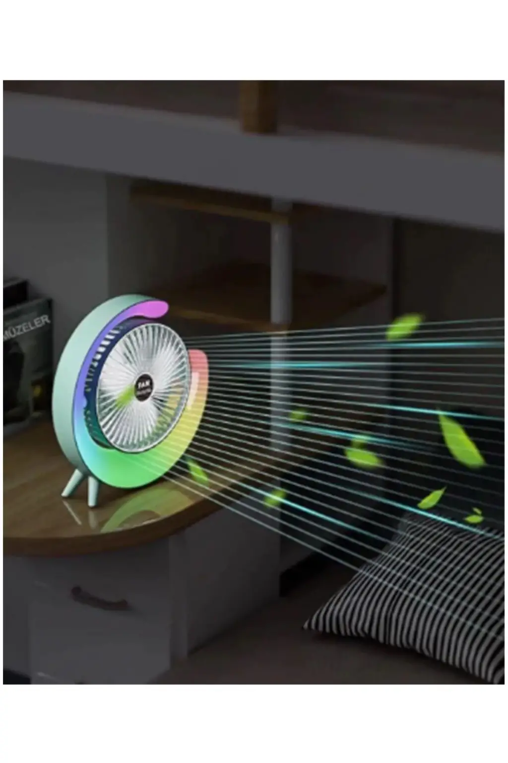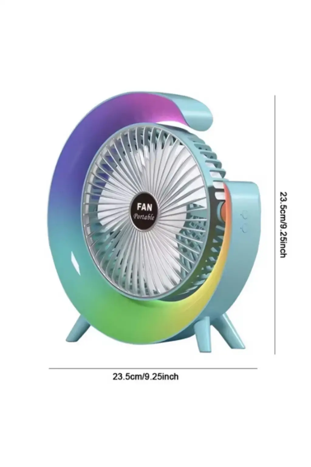 Masaüstü Vantilatör Usb Şarjlı Rgb Led Işıklı 3 Kademeli 180° Ayarlanabilir Soğutucu Fan