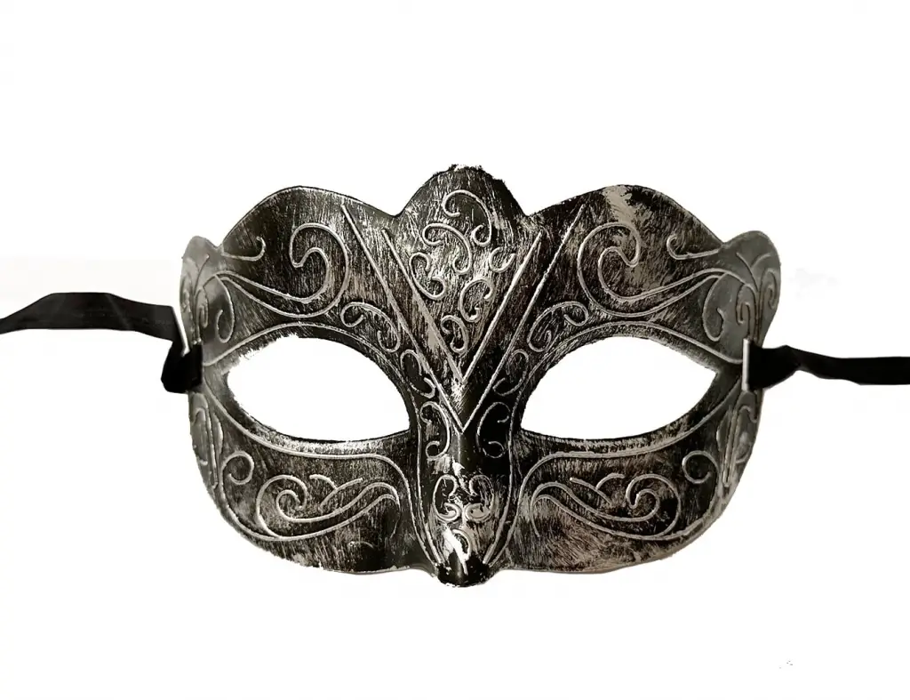 Antik gri gümüş renginin ve eskitilmiş görünümünün verdiği özgünlük ile Venedik maskeleri dünyasına adım atın. Bu özel maske, maskeli baloların ve temalı partilerin vazgeçilmez aksesuarı olacak.