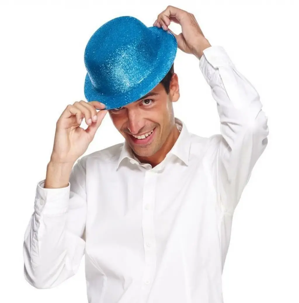 Mavi Renk Simli Melon Yuvarlak Parti Şapkası 24x26 cm