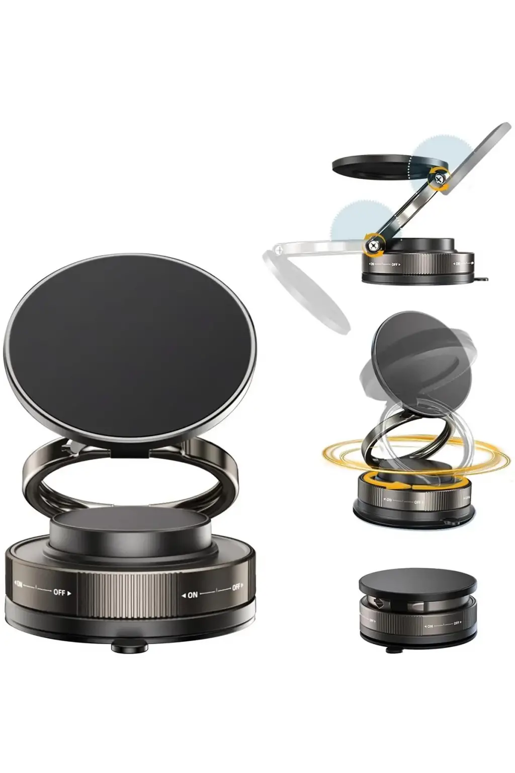 Metalik Magsafe Telefon Tutucu Tüm Yüzeylerle Uyumlu Vakumlu 360 Dönen Oynar Başlık
