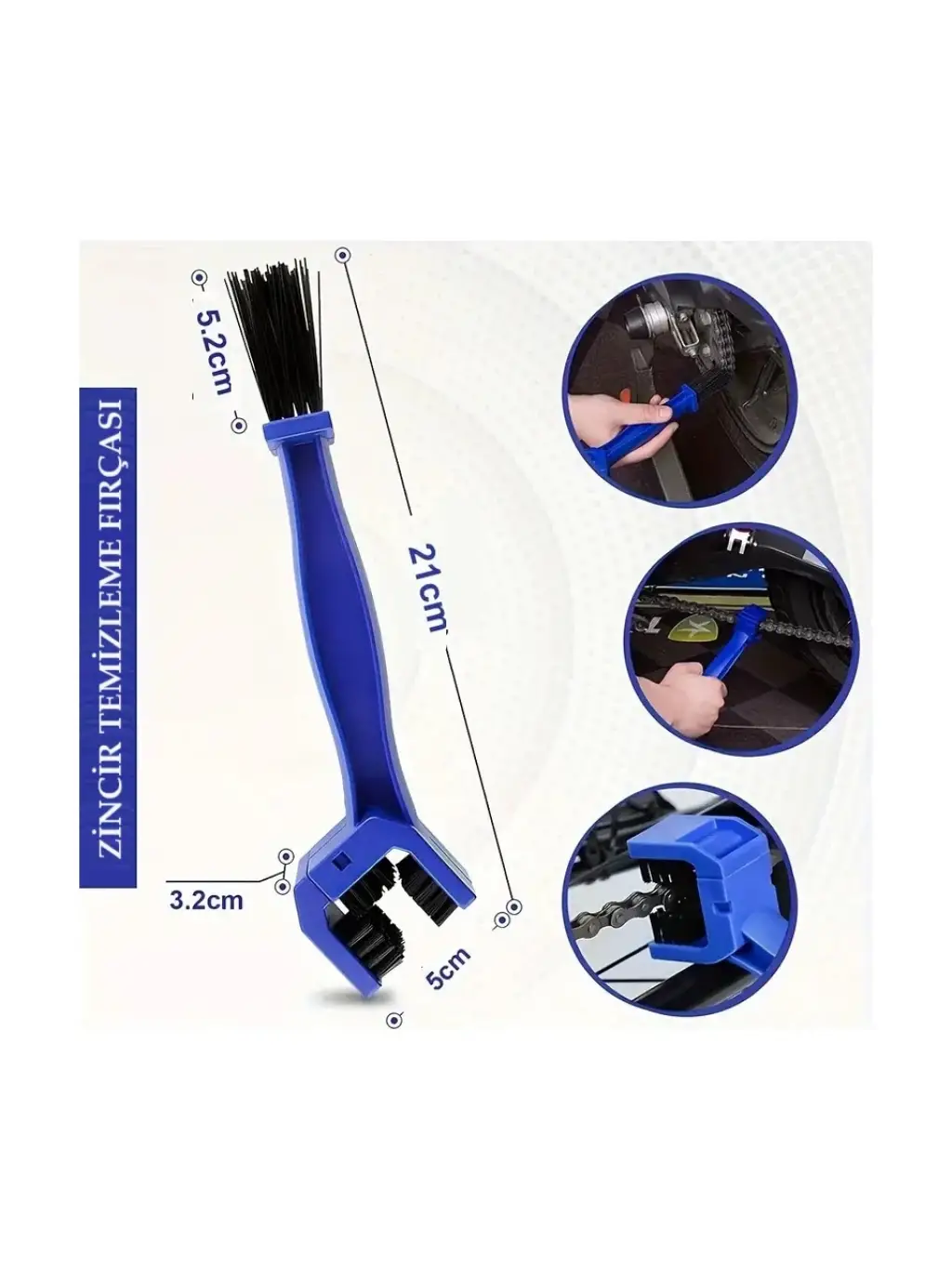 • Çok Fonksiyonlu Set: Çift yönlü zincir temizleme fırçası içerir.