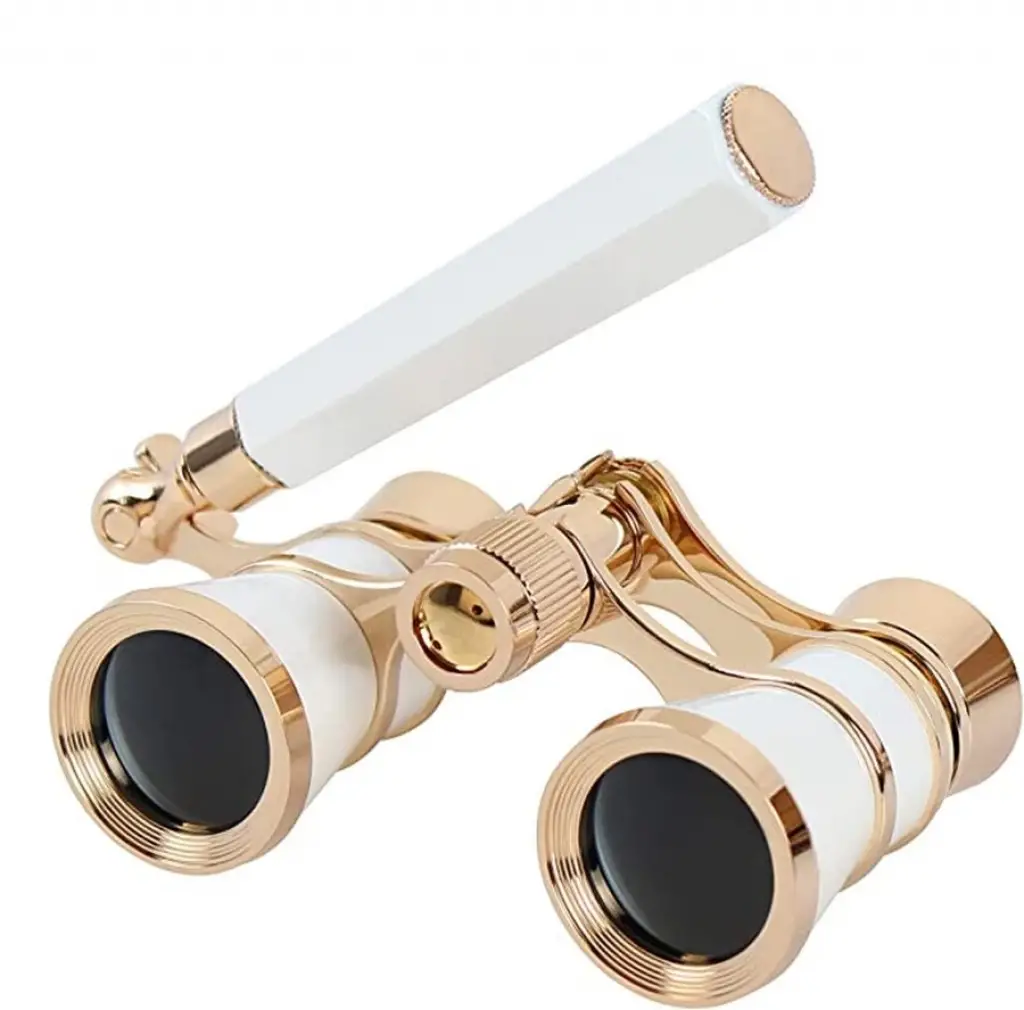 Nefis Işlemeli, Tiyatro / Opera Dürbünü 3x25 Prinç Metal Kaplamalı Retro Beyaz