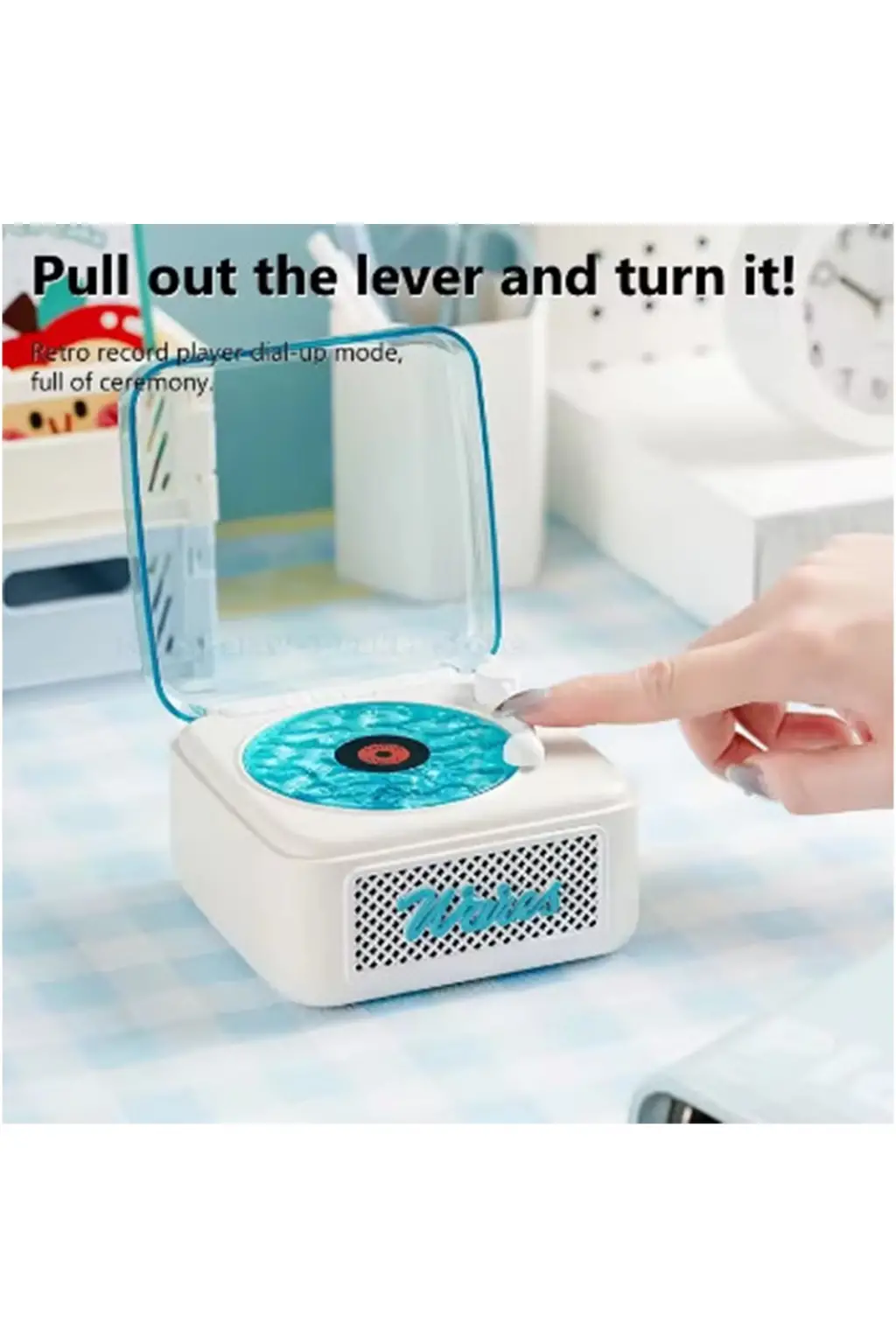 Nostalji Mini Plak Görünümlü Radyolu Bluetooth Hoparlör 3d Ses Dalgası Retro Müzik Plak Beyaz
