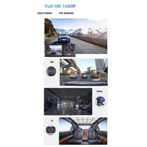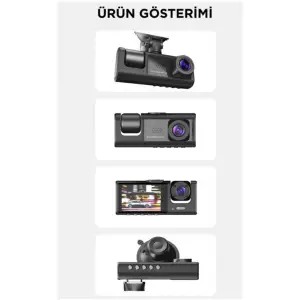 Araç İçi 1080p 3 Kameralı Lcd Ekranlı Gece Görüşlü , G-sensör , Geri Görüş Kamera