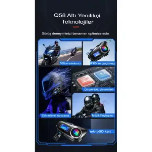 Q58-max Radyolu 2 Kişi Bağlantılı Bluetooth Kask Kulaklık Ekranlı Fenerli Müzik Ve Telsiz Intercom
