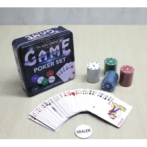 Metal Kutulu 80 Chip Ve 1 Adet İskambil Kağit Setine Sahip Poker Oyunu Alk3534
