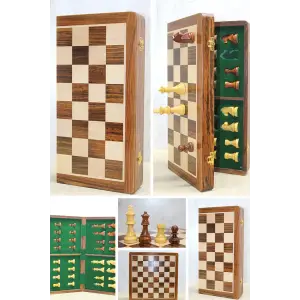 Mıknatıs Taşlı Ahşap Katlanabilir Kutulu Satranç Oyunu 17.5 Cm G611