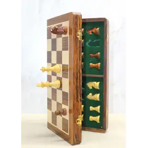Özel Vernikli Mıknatıs Taşlı Ahşap Katlanabilir Kutulu Satranç Oyunu 17.5 Cm G221