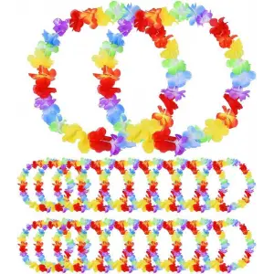 Hawaii Çiçekli Boyun Kolyesi - Renkli Tropikal Parti Leisi 12 Adet