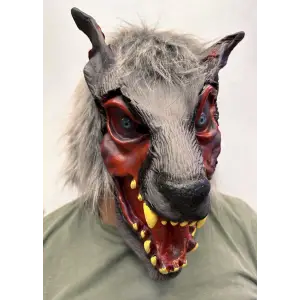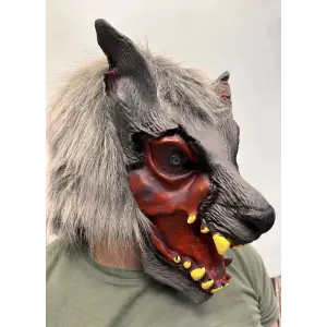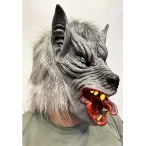 Kafaya Tam Geçmeli Lateks Dişli Ağzı Açık Kurt Maskesi