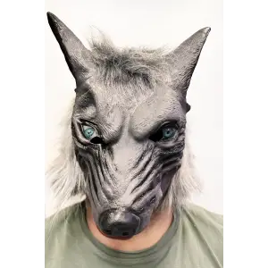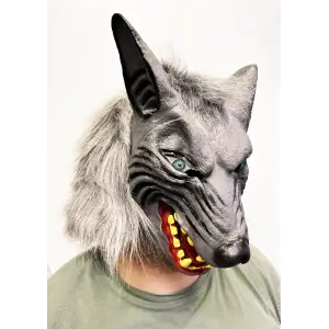 Kafaya Tam Geçmeli Lateks Mavi Gözlü Dişli Ağzı Açık Kurt Maskesi