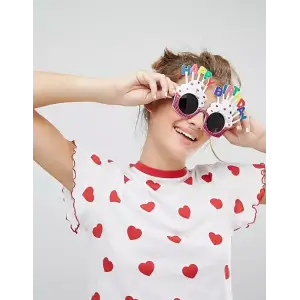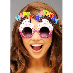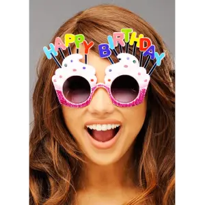 Happy Birthday Yazılı Beyaz Fuşya Renk Parti Gözlüğü 12x7 Cm