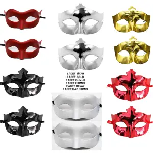 12’li Renkli Parti Maskesi Seti – Siyah, Gold, Gümüş, Kırmızı, Beyaz, Mat Kırmızı