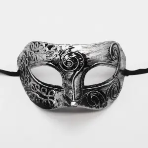Gümüş Eskitme Yüz Maskesi - Antik Tarz Balo Maskesi