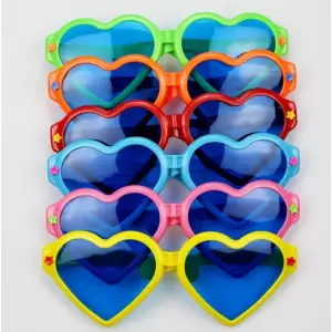 Mega Boy Büyük Kalp Şekilli Parti Gözlüğü 12 Adet Rengarenk