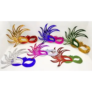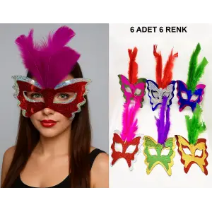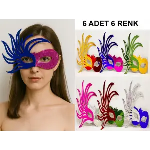 Renkli Parti Maskesi 639lı | Tüylü Karton Maske Seti (lastikli)