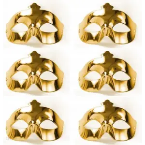 Altın Metalize Renk Düz Balo Parti Maskesi 6 Adet